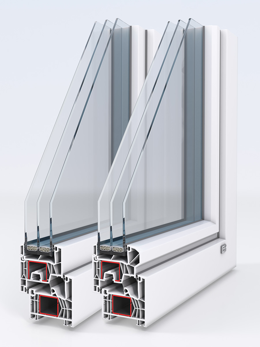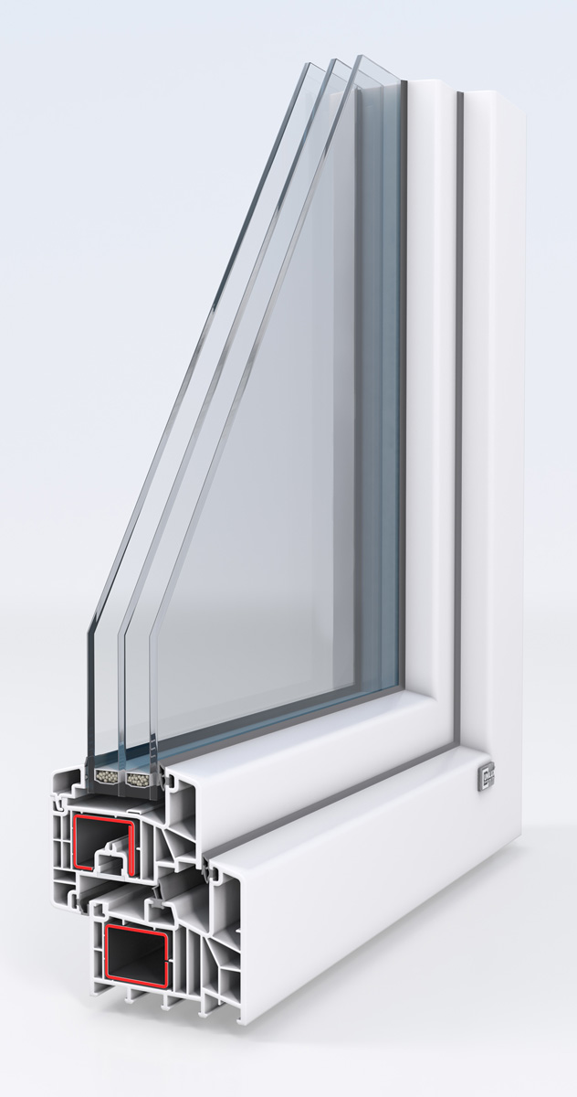 - Größtmögliche Stabilität der Kunststoff-Fenster durch den im Profil integrierten Stahl